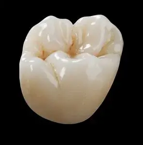 Solid zirconia with buccal porcelain layering, combining strength with enhanced facial aesthetics.