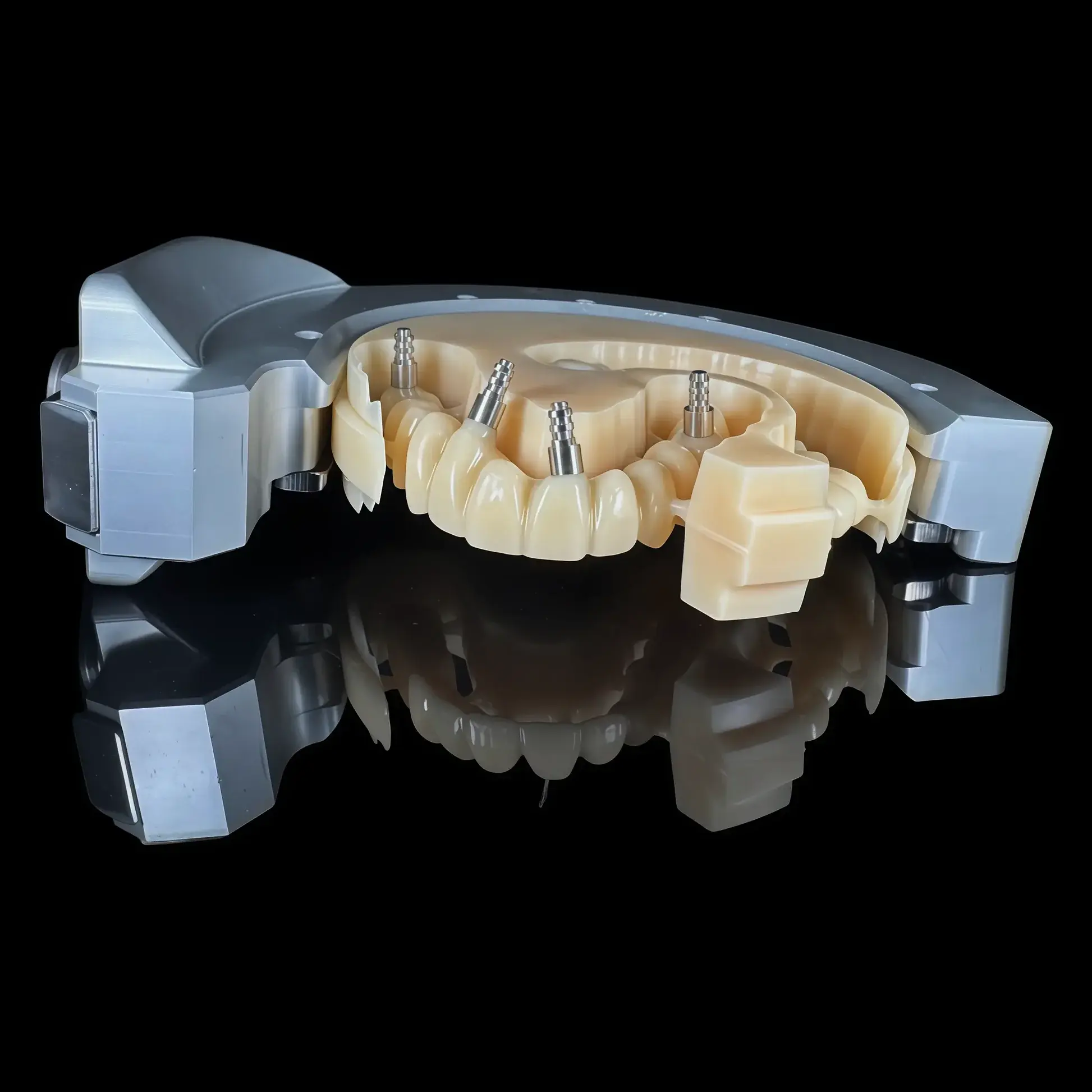 Hybrid zirconia bridges with titanium substructure, providing exceptional strength and stability for long-span restorations.