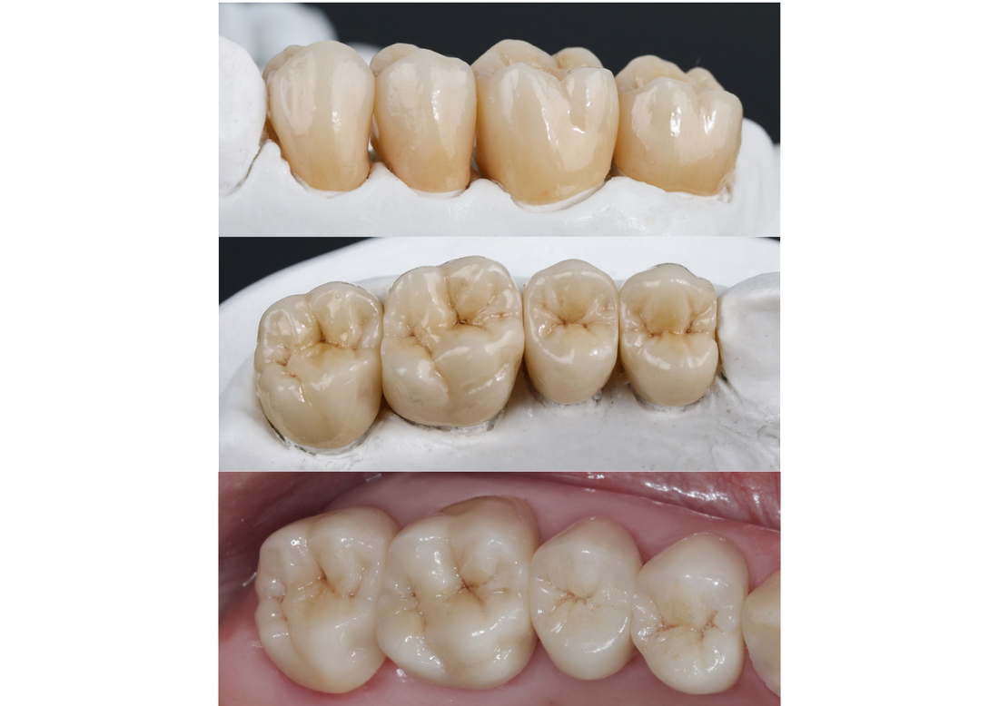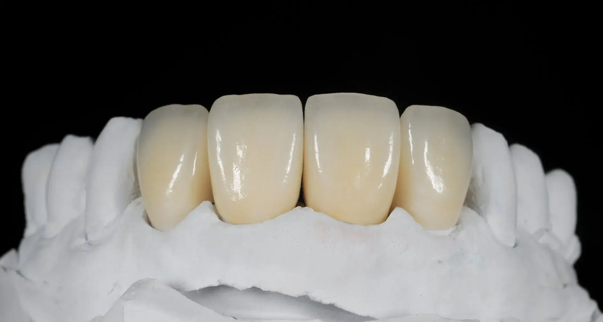 Zirconia restorations layered with porcelain to achieve superior aesthetics and natural translucency.