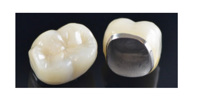 Porcelain-fused-to-metal crowns made with non-precious alloy, offering reliable strength and cost-effective performance.